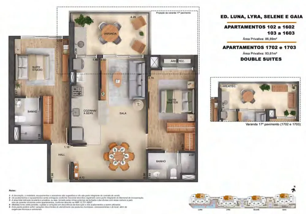 2 Qtos 1 Suíte 86 m² a 93 m²