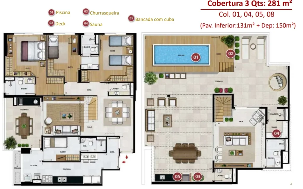 coberturas duplex com piscina